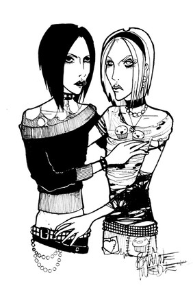 nice, the lack of colors beyond the red gives her a very cold, almost dead like look... scary. Does her neck-colar thing make neck look too long?... maybe it does for me - i can't tell, but it probably doesn't... hmmm talking to myself... good stuff though, excellent ink job.