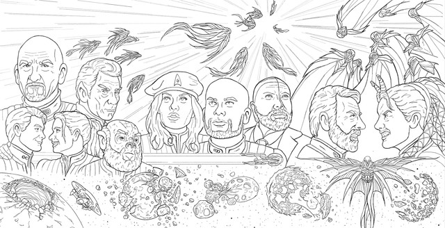 Das war mein zweitliebstes Bild von dem Sheet damals... damals, oh je, das klingt so lange her... :/ Auf jeden Fall finde ich das nach wie vor herausragend und ich freu mich das es das nun noch leicht grösser zu sehen gibt und ausgearbeit(er), weil das Motiv einfach nur schön ist. Ich hoffe wirklich das es das bis zur Colorierung schafft... weil, ja... es ist eben ein Bild zu immer wieder gucken. Etwas unschlüssig bin ich ob ich das nun anfüge.. aber ich riskiere es mal... es wäre für die Colorierung vielleicht eine Idee die Figur wegzulassen. Aus einem ganz einfachen Grund: wenn man sie nicht sieht sondern sich aufgrund der Spur nur dazu denken muss, lässt das Bild mehr Spielraum. Die Geschichte die erzählt wird... öffnet sich noch weiter und lädt noch mehr zu träumen ein. Aber so oder so, und gerade wegen der zwei Sonnen: Obercooles Bild!