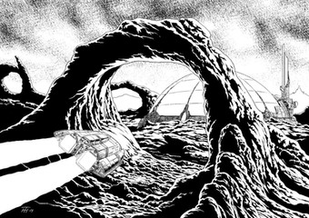 Oh, mein Lieblingsbild! In Tusche sieht die Dünenstruktur der weiten Sandebene gerade nochmal so gut aus. Auch hier wieder, ein ganz toller Effekt durch Minimalismus. Ich liebe die Szene immer noch heiß und innig!
