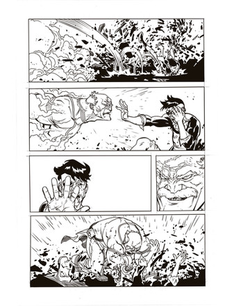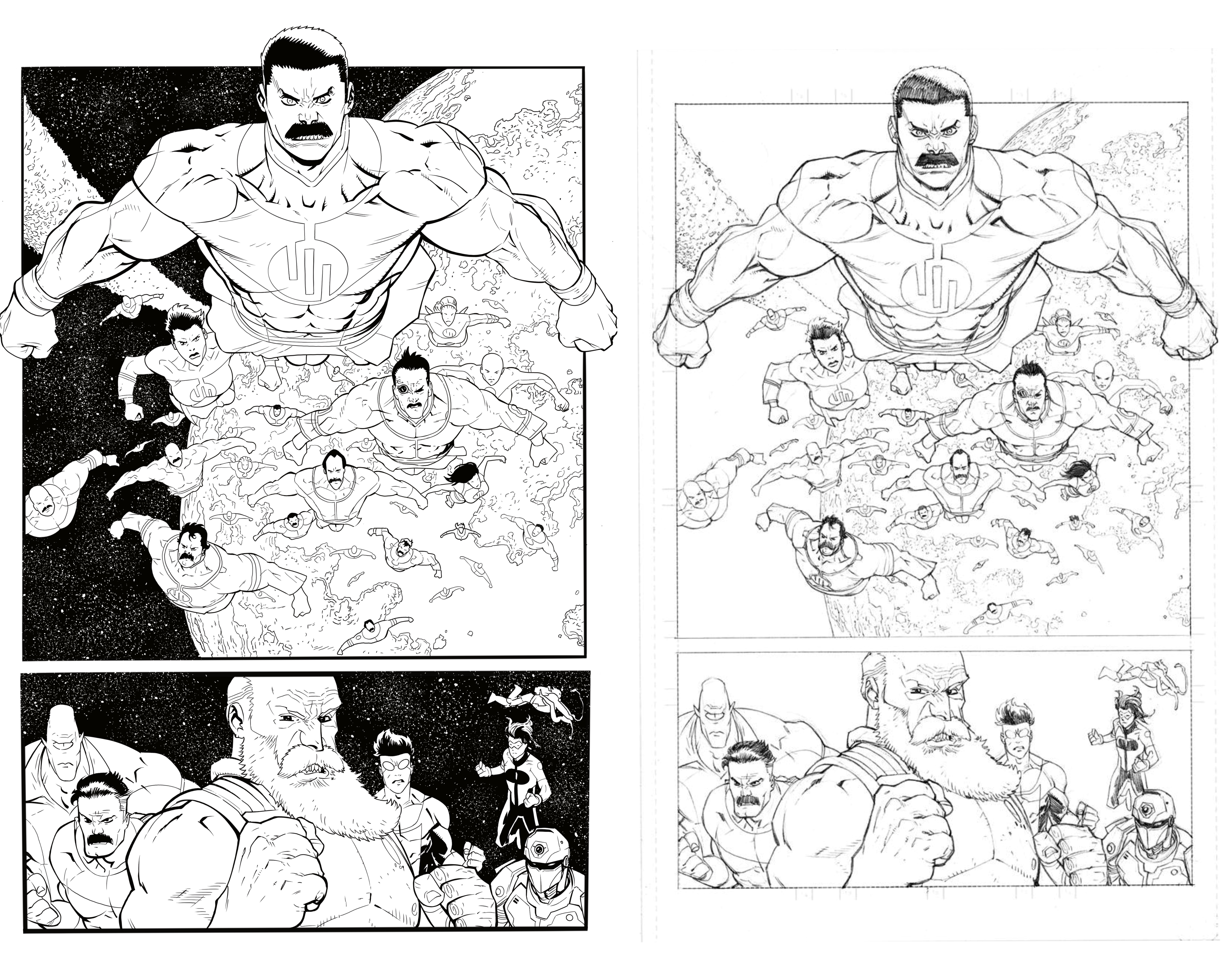 Ink sample over Ryan Ottley pencil. I added my own little flare while doing the inks and I thought the colored blood would go well with the black and white. Please leave some feedbackRyan is one of the creators of Invincible. An amazing artist and Iām a huge fan of his style. Check out his instagram