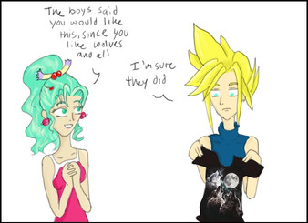 The gift that keeps on giving.Cloud gives Terra a gift, unfortunately Terra and Cecil may have misread Cloud's friendly gesture