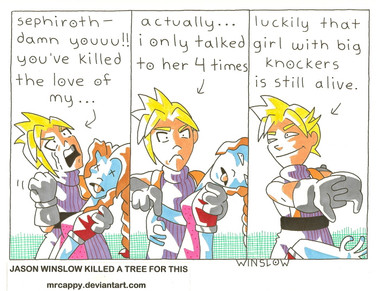 Your comics make me laugh always. I like Cloud's very "I'm awesome, you fail" expression, as well as the effect on Terra/Tina's face in the last panel with her. Nicely executed.