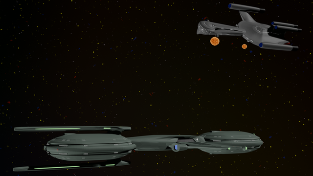 "Starfleet vessel, you are surrounded, attempt to flee or raise your shields, and we will destroy you."A strikeforce of 3 Romulan attack cruisers decloaks and surrounds the USS Tesla. All contact with the Tesla was lost and no sign of the ship or her crew was ever found...