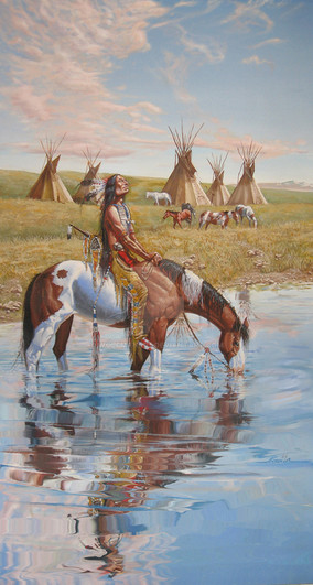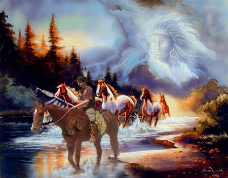 wow frank, this is amazing! This portarit shows alot of his emotions within the movie, and i love how you chose him after he joined the Sioux. It symbolizes alot more i believe than Kevin Costner's role as Dances with Wolves. I see it as a true Native American doesn't always have the blood and features of one. Today many modern Indians view the world as a horrible place and get drunk often. They have lost their place in the circle, and i believe don't deserve the title Native American, compared to their ancestors long ago. It also shows me, in a way. Though i am not your full blooded, dark skinned, thin haired Indian..a Native American is not a race you have to be, not clothes that you can wear, not jewelery that may show your Indian...but a spirit, a way of life..a strong conncction with the earth and all his/her relations that dwell with us and share our Mother. That, i believe, is a Native American.