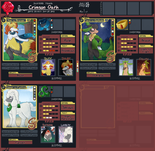 Eulian is an enigmatic Braixen who has travelled the world for many years. Her specialities include deflecting questions, haggling on the market, and finding creative ways to utilize her psychic abilities. She is very self-confident - perhaps a bit too much - and often refers to herself as the "Wise Fox" or "Witch of the West". With a vast knowledge of the workings of magic, it comes as no surprise that Eulian is a fairly powerful mage and magic theorist. She's had a notable lack of interaction with society over the last few decades, but her affiliation with Eren is rapidly forcing her to change that. Along with a habit of smoking on twigs and an inability to evolve to her final stage, this fox makes for one peculiar pokemon, to say the least.