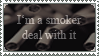 Okay, people will probably hate me for this, but the only reason I made this was because I've seen stamps out there supporting non-smokers, quitting smoking, and things along those lines. Well, what about the people who do smoke, and support those who do? So, I made a stamp for said people.Also, it gave me an excuse to draw a cigarette, which I had an urge to draw for some odd reason...