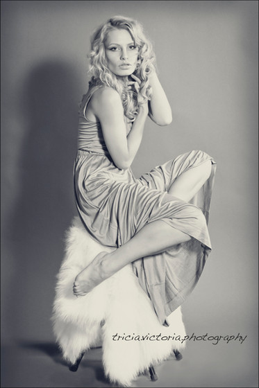 The lighting is fabulous, but it seems like there is confusion in her pose. She looks wider than she needs to be. The leg warmers are a great accesory, but they seem to be taking the focus away from her face.