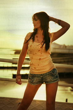 I like this. Aside from the fact that she's a really lovely model/girl, I like the leaves on the side of the photo and the pose, aswell as the nice composition and lighting. Nice job.