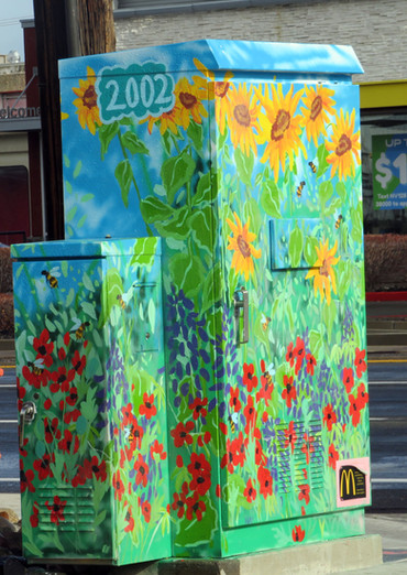 Little neighbor playing with kite.Kite gets entangled in power line. String is cut so the wind will unravel kite. Little neighbor grabs on to the dangling string for a second and then lets go.