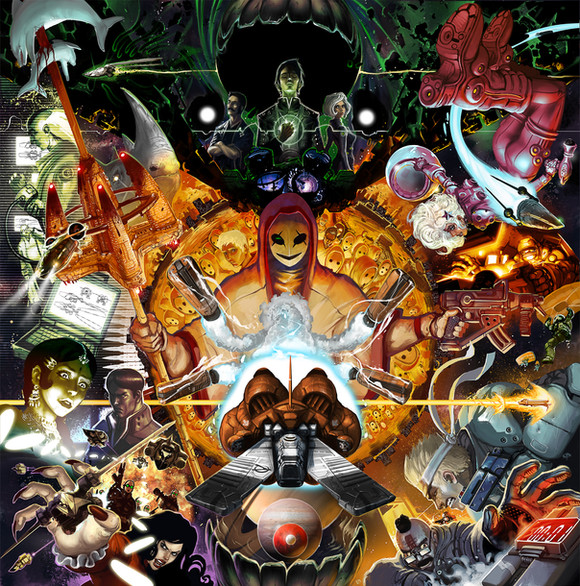 Oh, I really like this one.Β Brutal!Β Reminds me a bit of the print of Kamjin beating a poorΒ VF-1A to scrap with its own gun pod, from the 1980s MACROSS PRINT PORTFOLIO.Β The Miclone has turned!