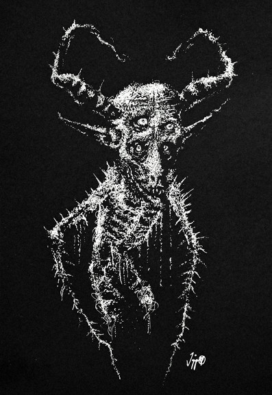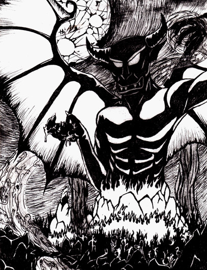 I like this. Somber. Spooky. I like what you did with the trees, and the eyes on the demon. It's amazing how much life you can bring to an image so simply drawn. Great job!