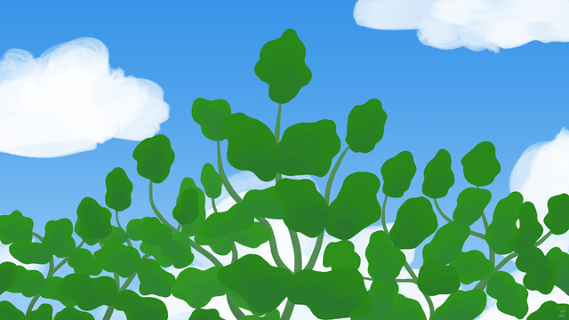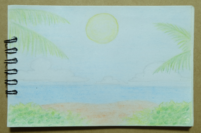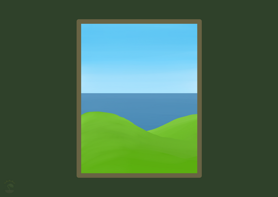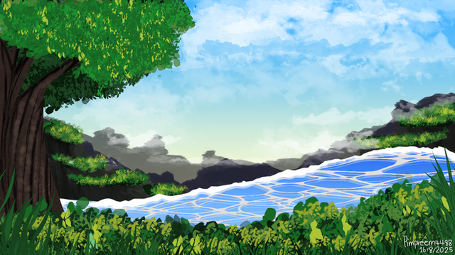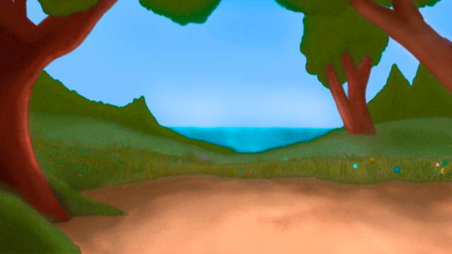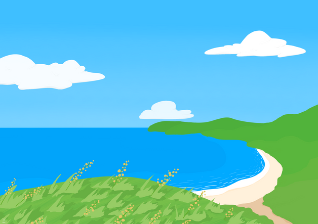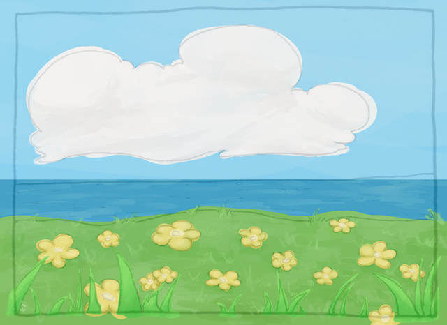 hills · grassland · trees and bushes · ocean and sky view · digital art · Clip Studio Paint · XP-Pen Deco Mini 7