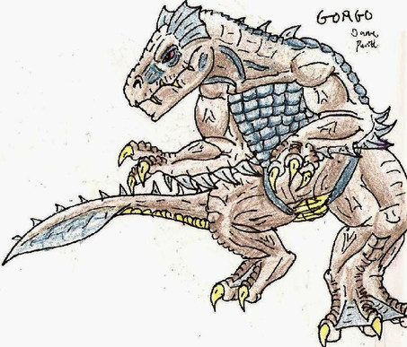 Really pleased with how the coloring came out on this one. I wanted to hearken back to the Showa MG, whilst giving him a head similar to my incarnation of the G-Man. I kept that red ear piece, and made his arms bigger, with open segments for his rotating missiles to fire. I also really like that tail blade.