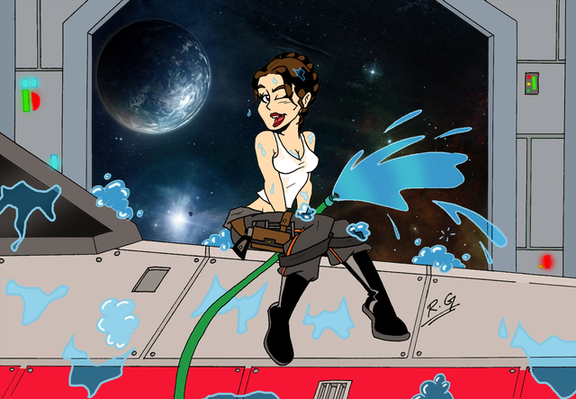 This pic isn't meant to be recreating any scenes from the films, it's just something I thought would be fun to do with Star Wars Day coming up. Princess Leia and R2-D2 are trapped in an Imperial stronghold somewhere and are attempting to escape. Leia's hair design is one I saw in one of the comics once while her dress is a variation of her one from Episode IV: A New Hope and I just thought that the idea of R2 nervously peeking round the corner was cute. May the 4th be with you!Star Wars created by GEORGE LUCAS