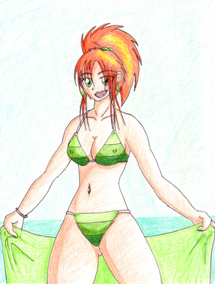 #bikini #goth #gothgirl #greeneyes #magic #oc #pinup #pointyears #redhead #sexy #sunshine #witch #opheliawolvencroft #sorceress #bendingmasterb10td