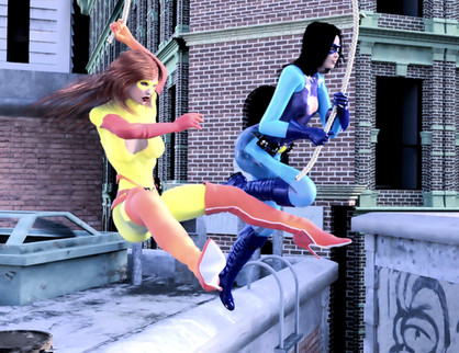 “NO!” the young heroine screamed. She clawed at the air, desperately reaching, trying to regain a grasp on any of her cousin’s limbs, even some part of her costume, anything...!