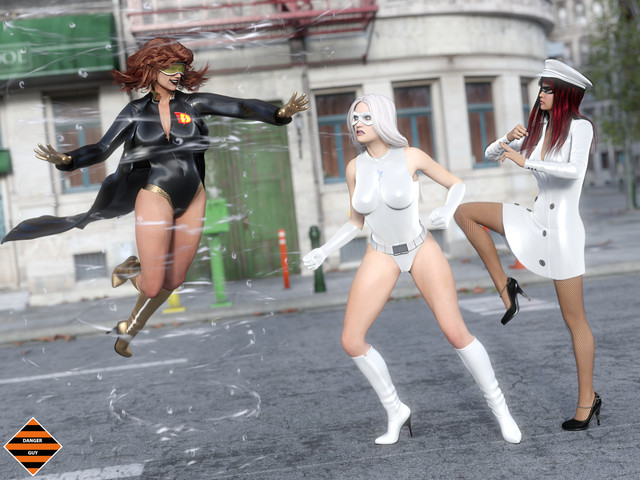 “Wait, not so fuckin’ FAAAAAAAAAAAAST!!!” Strykana yelled as the four heroines descended to the street.
