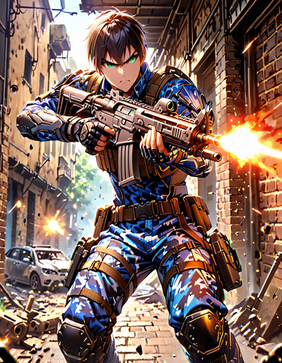 #anime #military #characterdesign #warrior #badass #militaryuniform #1boy #assassin #assaultrifle #city #commando #cyborg #destruction #embers #explosion #firing #house #navyseal #originalcharacter #ruins #solo #villain #weapon #green_eyes #assault_rifle #brown_hair #muzzle_flash #fire #security_guard #male_focus