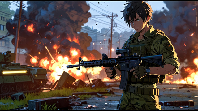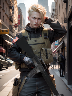#characterdesign #military #warrior #badass #militaryuniform #1boy #assaultrifle #brick #building #city #cyborg #destruction #explosion #firing #gloves #gun #house #tattoo #teeth #uniform #villain #weapon #green_eyes #brown_hair #brick_wall #fire #security_guard #cyborgcharacter #clenched_teeth #male_focus