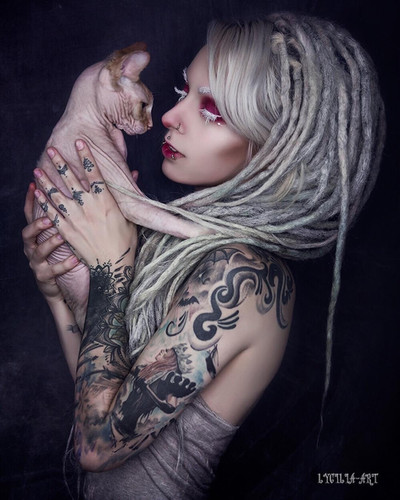 I like this shot. I think because there is a cat init and a girl with tattoos and piercings. Great job!