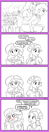So! Anyway! I do really like the contrast of Sunset learning to adapt to the whole human world, and I also like the idea of the reverse. It's so easy to unintentionally offend someone from another culture with what seems a harmless joke. Poor Fluttershy never knew what hit her.