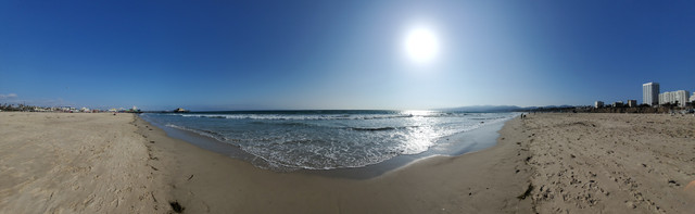 Beach Pan ReferenceShot the photographs for this beach panorama in Santa Monica, California, just south of the pier. The photographs were stitched together in Photoshop. I used this beach panorama as a reference for the background of my 1965 Corvette In Oil painting. [link]