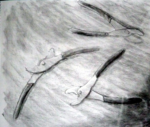 Assortment of hand tools that i sketched gearing up for a final project in this class. Scanned a bunch of them and threw them together in Photoshop to present them here. Some of them use the grid method, and some do not. On some i used an Ebony pencil for the value changes.