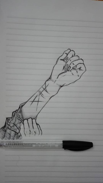 The hand was drawn from the nature meet my left hand starring as my right hand. I can't twist my right hand that way now, I can't properly extend the fingers in the proximal joints to make that claw hand.