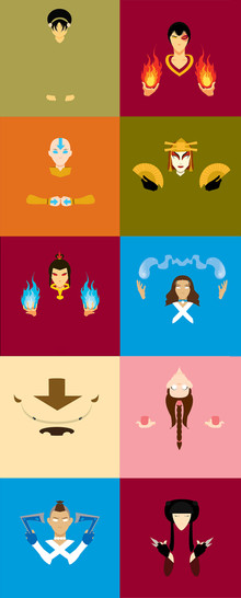Haré uno así, para cada avatar que se conoce, es decir que serian: Korra, Aang, Roku, Kyoshi, Kuruk, Yang chen, y son por que son los únicos que se conocen.