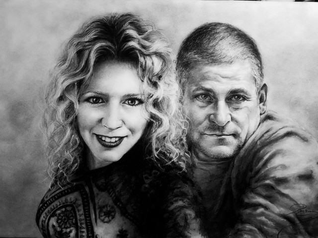 #blue #couple #forever #love #married #portrait #purple #red #tender #wedding #coloredpencils