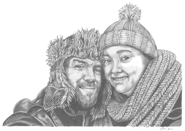 Colored pencils on paper;This portrait is based on a wedding photo of the most inspiring, amazing couple I know. Drawing it was a long and loving process.