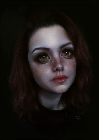 Since you asked for critique, I think her right eye (screen left) is visibly bigger than the other one, but it could just be because the other one is partially covered.