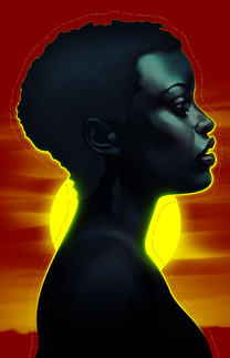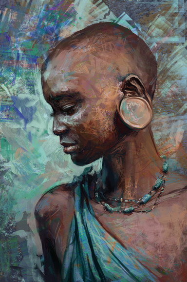 I don't know if I'm the only one, but when I look at this, I see it like I'm looking at one of those stereoscopic illusions in those Magic-eye books, or like I'm looking at a diorama. It looks 3D - as in I feel like I'm seeing it in 3 dimensions, not like you made it in a 3D program. The yellow paint in front of her face and boob especially has this effect. I'm not sure if it was something you did specifically that's causing it (like painting at so high of a resolution that the borders between colors are ridiculously crisp or if it's caused by the contrast between the colors? or something else?) or if it just came out that way unintentionally.