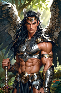#characterdesign #warrior #magic #fantasyart #fantasycharacter #angel #digitalart #adoptable #elf #mythology #portrait #characterconcept #malecharacter #guardian #ai #adoptablesopen