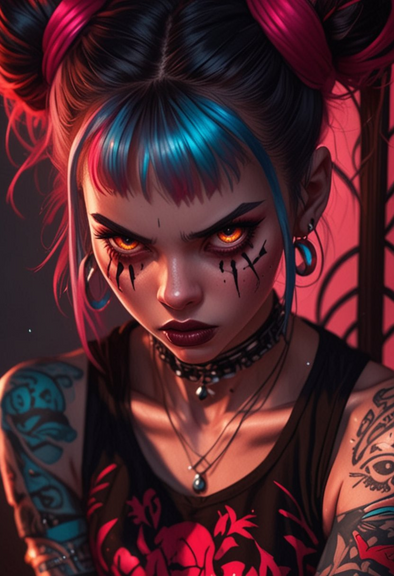 #digitalart #characterdesign #portrait #cyberpunk #hairstyle #cartoon #digitalpainting #scifi #tattoo #fanart #photography #beauty #neon #adoptable #adopts #ai #future #night #punk #studs #tattoos #cyberpunkgirl #adoptablesopen #holidays2024