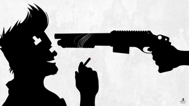 I drew the initial version of this piece at 4 AM after watching a music video for a sappy love song. It was a quick sketch, but it captured the sense of restrained anger I felt at the time, given that I was fresh off a summer romance.