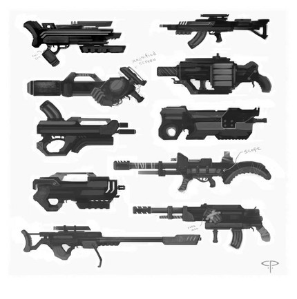 I'm choosing to crit this because I did something almost just like it last year. Fun isn't it? The number of guns you fit on the page is very good, game design companies do not like flipping pages during interviews, so good call there. The originality of the guns is actually pretty good! I don't see to much here that looks just like a real world weapon. You seem to have researched these well and most of them seem like they would work. The biggest negative I have is the craftsmanship. You need to be holding down the key that makes perfectly straight lines when you draw these, especially for the barrels. Some of these are lacking triggers, so add those too. Make sure you think about holding these too, ask yourself would the hand really fit around the handle? Keep it up.