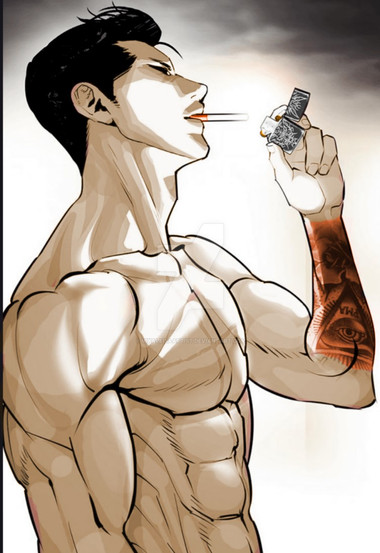 mmmm smexy, but he looks almost....un-approachable >.< like he would punch you in the face if you offered him a smoke, very highly strung looking. haha, but sexy body, ohs yes