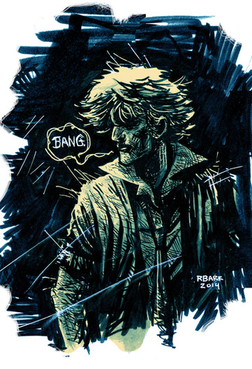 Now that's what I wanna see, a cool-as-a-rattlesnake badass sporting a mean grin . I dig the silhouettes you got goin in here.