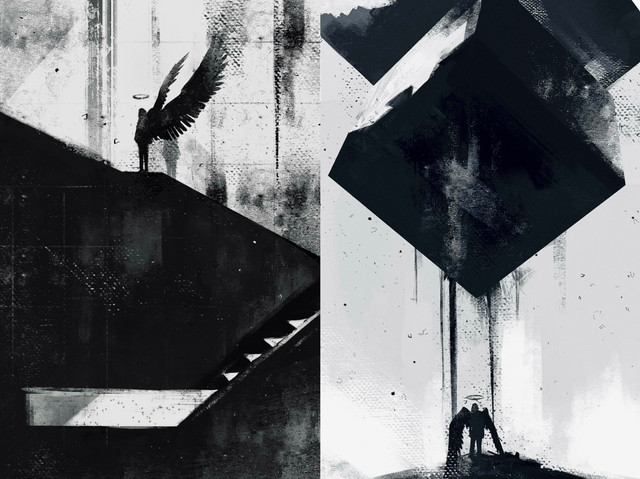 This is a powerful and evocative scene. The monochrome pallette works well to focus the viewer on the central play between light and shadow.