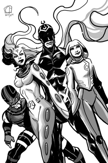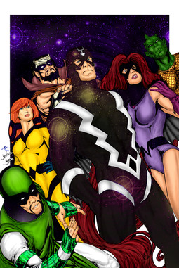 Ficou muito legal, principalmente a figura do Raio Negro! Me lembrou algo de John Byrne.