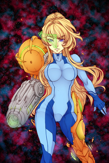 Very dramatic. You're style is definitely something to admire in this one. love the half armour look on samus too.