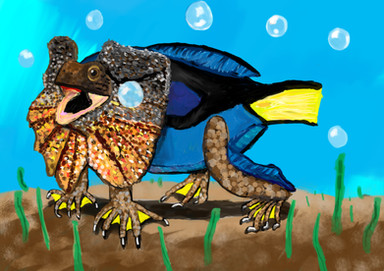 This is a painting of a scene involving a squirrel riding on a lizard.The process can be found here: www.youtube.com/watch?v=EnPIgf…