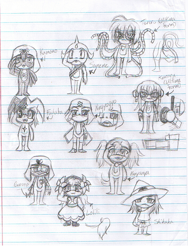 Little turret doodles, The normal ones are modeled after Rika from Higurashi, while the Bunk turret...well please don't laugh but they remind me alot of bettlejuice so I've kind of modeled them after him.Related content