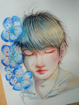 #artwork #beauty #birthflower #fanart #flower #hobi #illustration #painting #portrait #traditionalart #watercolor #watercolorart #watercolorpainting #rumex #jhope #btsfanart #hoseok #junghoseok #btsart