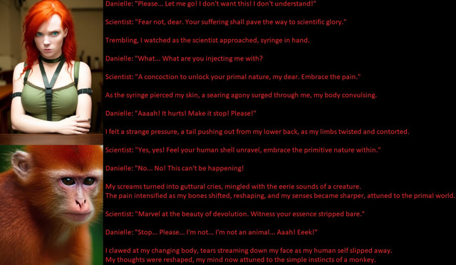 Suddenly, Danielle felt a strange sensation in her body. At first, it was just a tingling feeling, like pins and needles all over her skin. But soon, the sensation grew stronger, and she could feel her body changing in ways she couldn't explain.