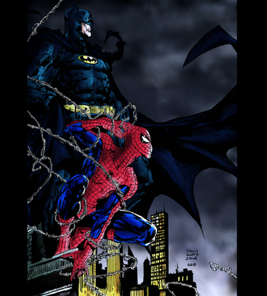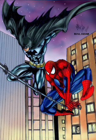 Here's another coloring of an awesome crossover with Batman and Spider-Man! The original line art was done byHere is the original art...[link]