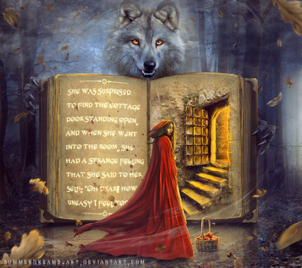 Nice work!I love the way the wolf is peering out from behind the pages.