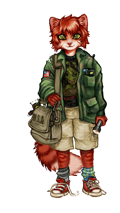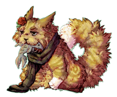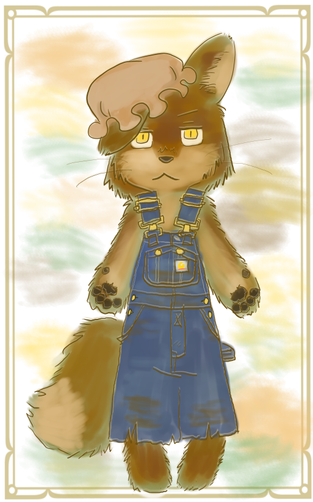 I absolutely adore this, I love how accurate the anatomy is for his head. I believe the dark neutral colours make it seem rather dim and depressing, yet the kitten face and the clothing also make it very adorable. This is just, so amazing. I absolutely adore it, I love the textures as well, they look rather simple when you zoom in but from afar they make the image look more realistic and intricate.