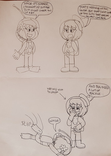 Ribon.- Seguramente lo dices por mi traje de baño, quisiera aclarar, ese traje de baño lo escogió mi ama para mi, y debo admitir que no me gusta mucho usarlo, mas que nada porque no me gusta nadar... ni tomar baños